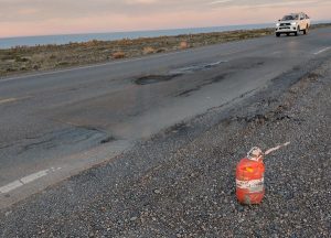 Automovilistas que circulan periódicamente y diariamente por la ruta nacional 3, en el tramo Caleta Olivia y Comodoro Rivadavia comenzaron a colocar cubiertas, bidones o conos pintados de naranja advirtiendo … Sigue leyendo “AGUANTE VIALIDAD” GESTIÓN GOMEZ BULL, RUTA 3: COLOCAN AL COSTADO DE LA RUTA BIDONES PINTADOS DE NARANJA ADVIRTIENDO “ENORMES POZOS”.