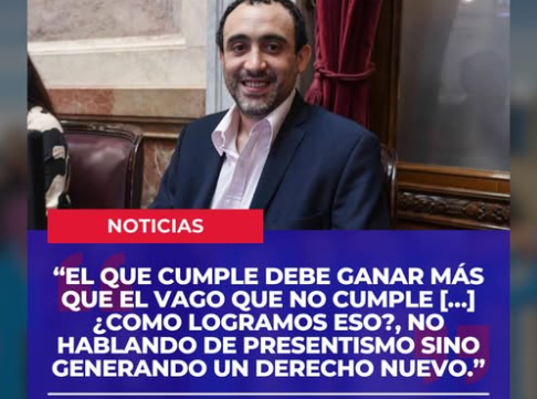 En este sentido el legislador preguntó: “¿Vos no estás a favor que aquel que labura, que se esfuerza, que no presenta boleta gane más? ¿No tiene que ser así la vida: que el que se esfuerza, el que labura y cumple, gane más que el vago que no cumple? Ahora bien, capaz se comunicó mal”.