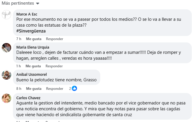 Orden de prioridades o negocio? en una capital sin cloacas y con calles y veredas abandonadas las redes sociales y el ingenio popular se expresan y hasta nos dieron el pie para poner el titulo en la siguiente nota. La idea la lanza el propio intendente que luego de realizar una dramatización mediática por la demolición de una escultura del anarquista Osvaldo Bayer ahora es el quien planea demoler un monumento. Grasso va contra un escudo histórico que distingue a la ciudad capital para hacer lugar a otras de sus faraónicas obras.